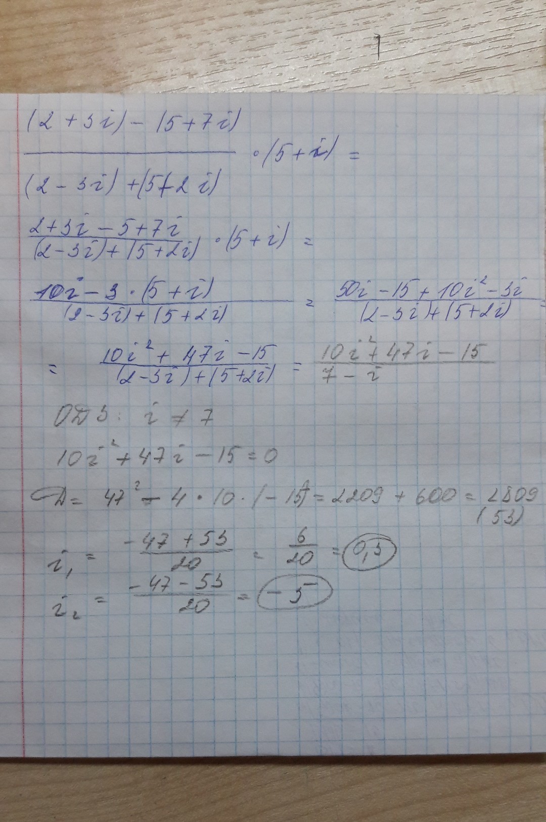 (2+3i)-(5+7i) это просто тут нужно скобки раскрыть то есть 2+3i-5-7i=5-4i