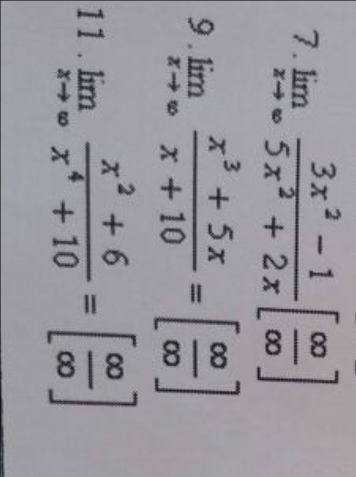 8. lim(x→∞) (x(x^2+5))/(x(1 + 10/x)) = lim(x→∞) (x^2 + 5)/1 = ∞