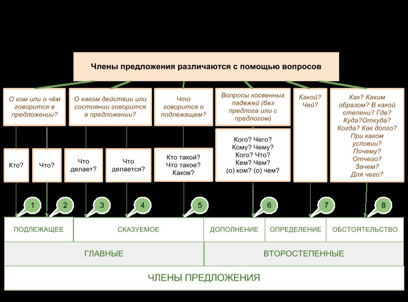 Член предложения - синтаксическая функция слов и словосочетаний в предложениях.