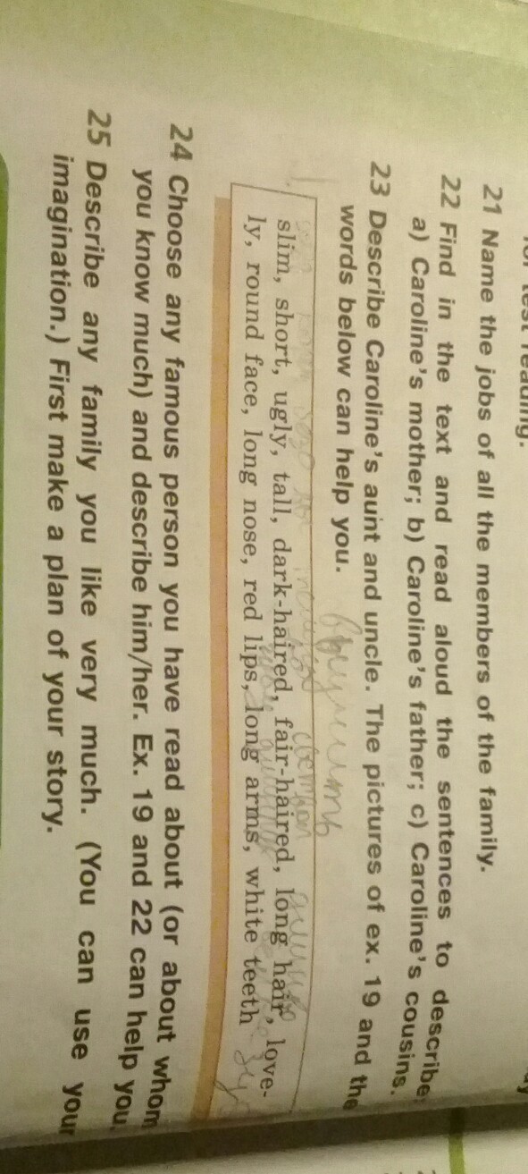 22 в тексте найди и прочитай вслух предложения описывающие а) маму Карлз б) папу Карлз в) кузину Карлз.