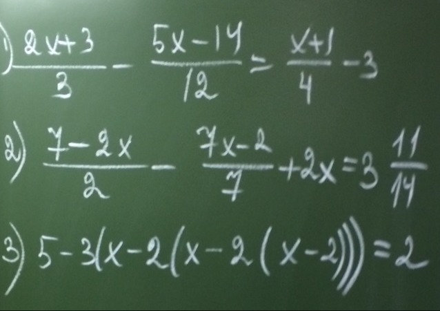 3)5-3(х-2(х-2)))=2;5-3х+6х-12=2; 3х=15; х=5