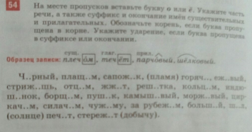 Чёрный, плащом, сапожок, горячее, ежовый, стрижешь, отцом, жжет, решетка, кольцом, индюшонок, борщом, пушок, камышовый, моржовый, циркачом, силачом, чужому, за рубежом, большой, шел, печёт, стережёт.