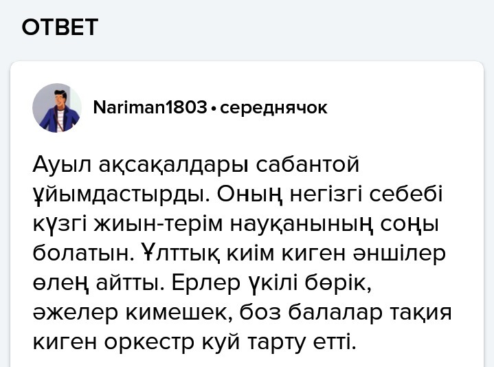 Сабантой, кузги жиын-терим, улттык киим, укили борик, кимешек, такия, куй тарту туралы создермен матин курау