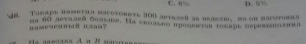 токарь наметил изготовить 300 деталей За неделю но он изготовил на 60 деталей больше на сколько сколько процентов токарь перевыполнил намеченный план
