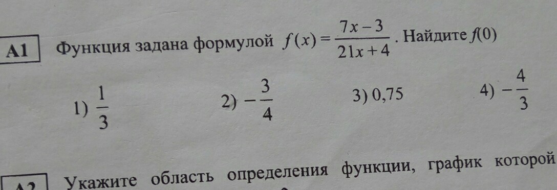 f(0)=(7*0-3)/(21*0+4)=(-3)/4= -3/4. Ответ: цифра 2.