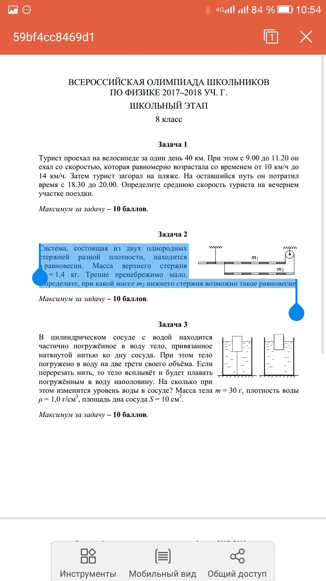 Определите, при какой массе m2 нижнего стержня возможно такое равновесие