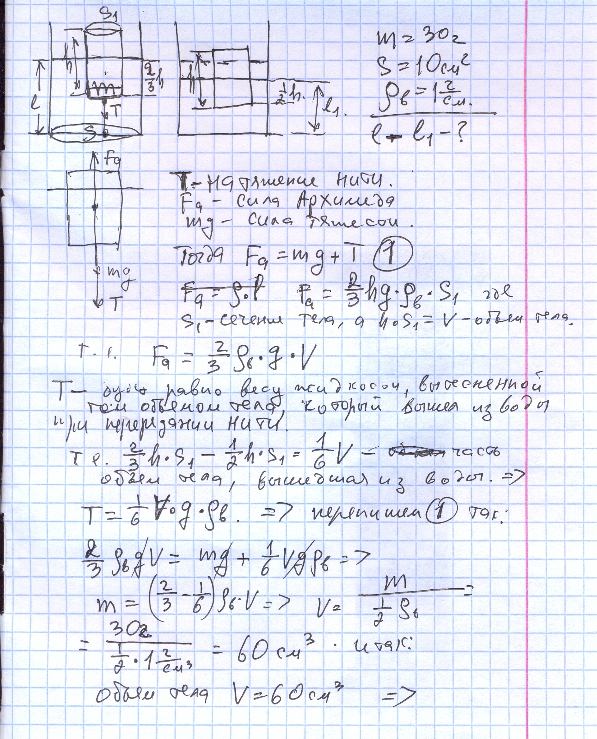 этом изменится уровень воды в сосуде? Масса тела m = 30 г, плотность воды