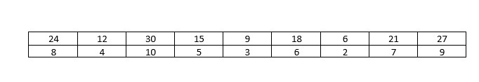Вот сделала таблицу. Вверху числа, под ними те же числа, разделённые на 3.