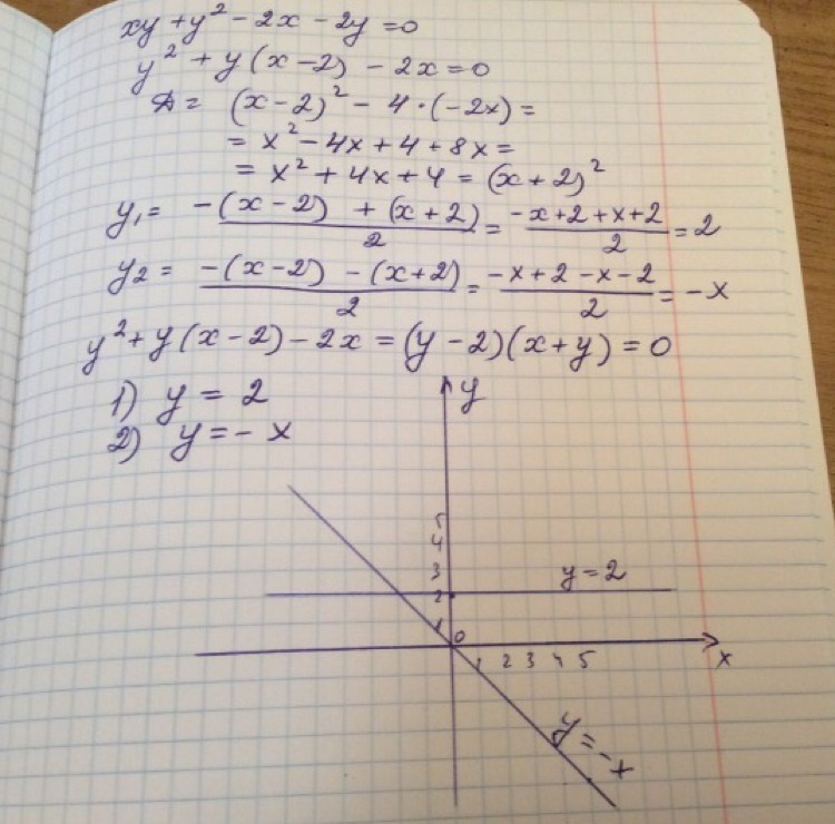 Постройте график уравнения xy+y^2+2x-2y=0, разложив его левую часть на множители. дам 20 баллов. ЗАРАНИЕ спасибо)))))