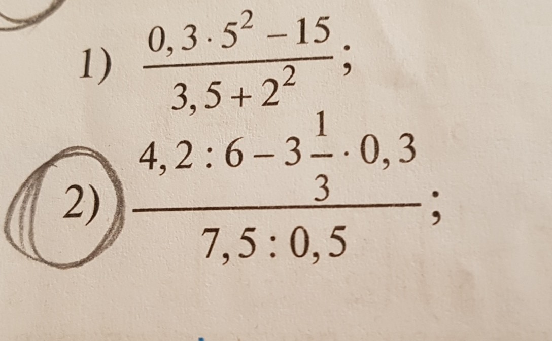 1)0,3*25-15/3,5+4=7,5-15/7,5=-7,5/7,5=-1