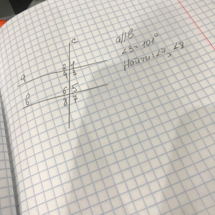 А угол 8 смежный с углом 7, их сумма равна 180°, то есть угол 8=180°-угол 7=180°-101°=79°