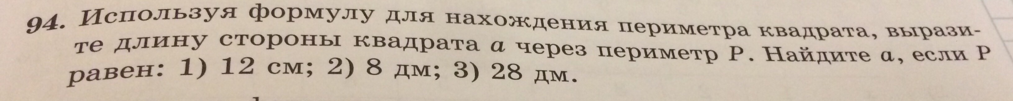 28 дм : 4 = 7 (см)