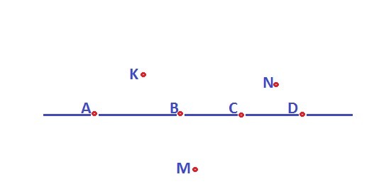 начерти прямую и отметь 3 точки, не лежащие на этой прямой, и 4 точки лежащие на ней. обозначьте точки буквами