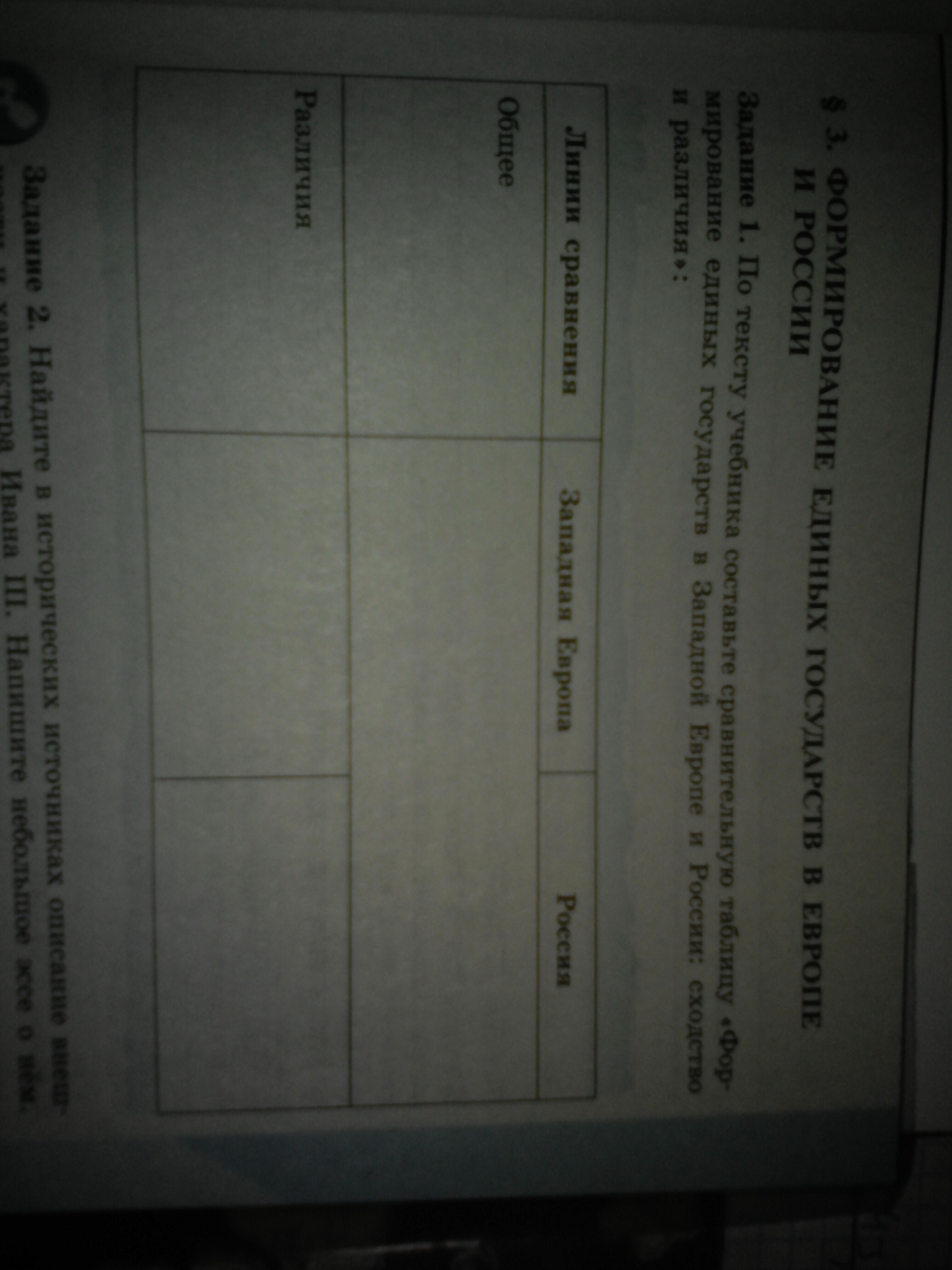 по тексту учебника Составьте сравнительную таблицу формирование единых государств в Западной Европе и России сходства и различия