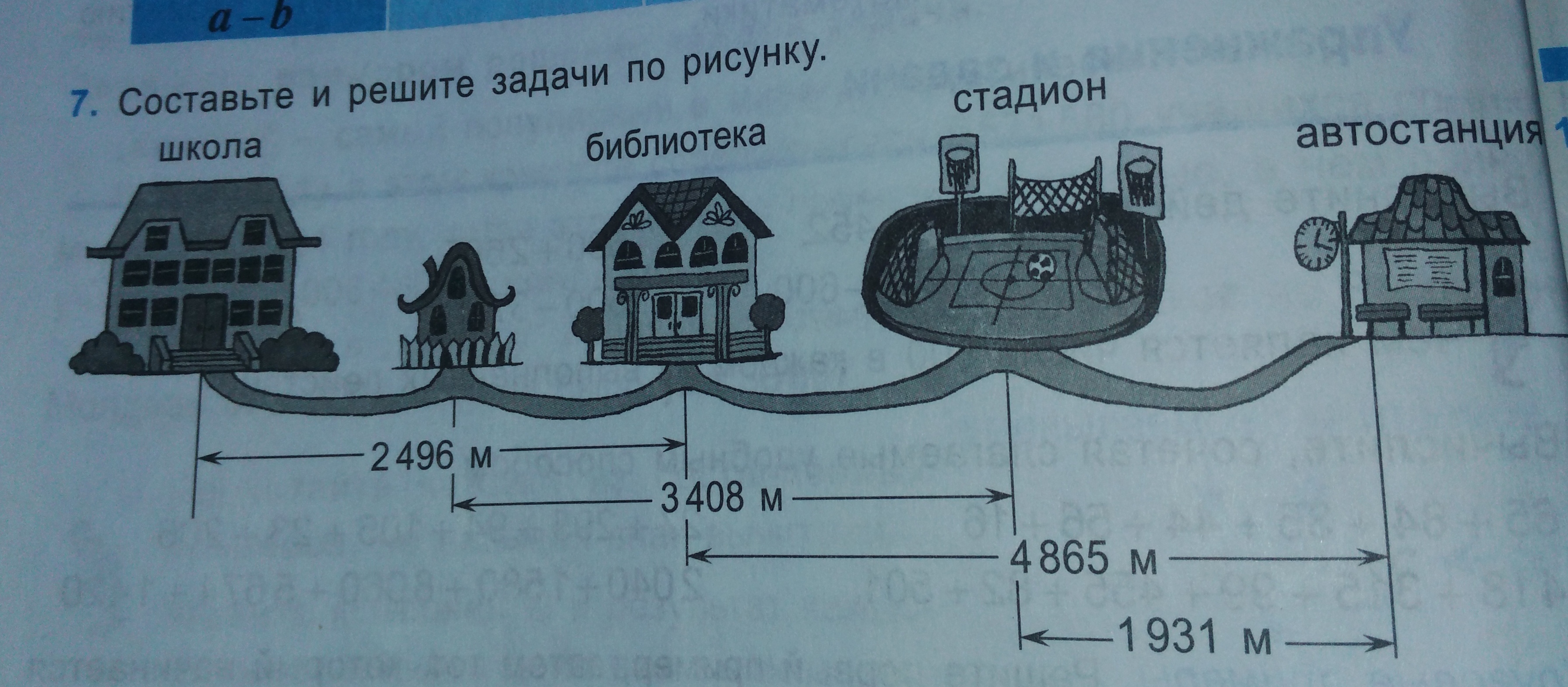 Между школой и библиотекой стоит домик Пети.Между школой и библиотекой 2496 м.После библиотеки идет стадион,от Петиного домика до стадиона 3408 м.После стадиона идёт авиастация,от стадиона до авиастанции 1931 м.Сколько всего метров от школы до авиастанции?