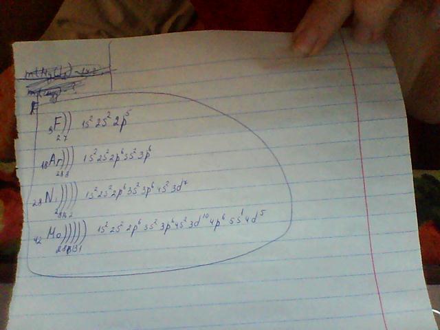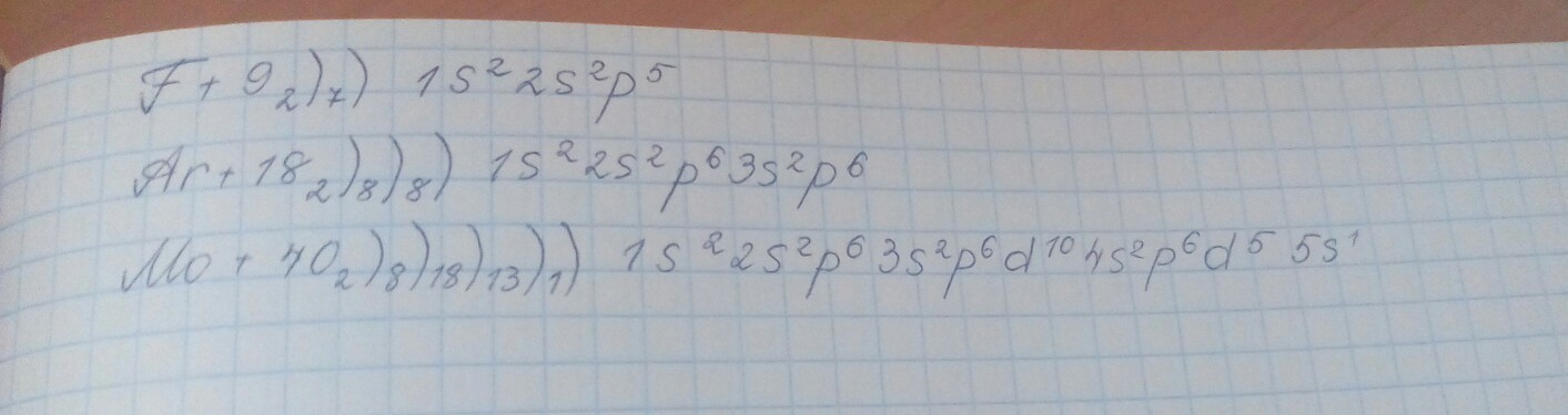 Фтор , Аргон ,Никель,Молибден напишите пожалуйста периоды периодической системы (химия к примеру 1s2)