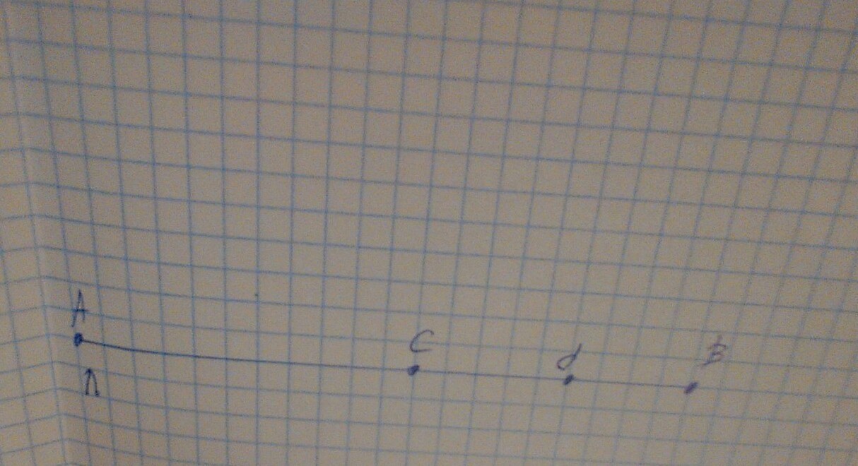 Начертите отрезок AB=10cm и отметьте на нем точки c d так что ad=8cm BC=4см5мм чему равна длина отрезка DC умоляю срочно нужен