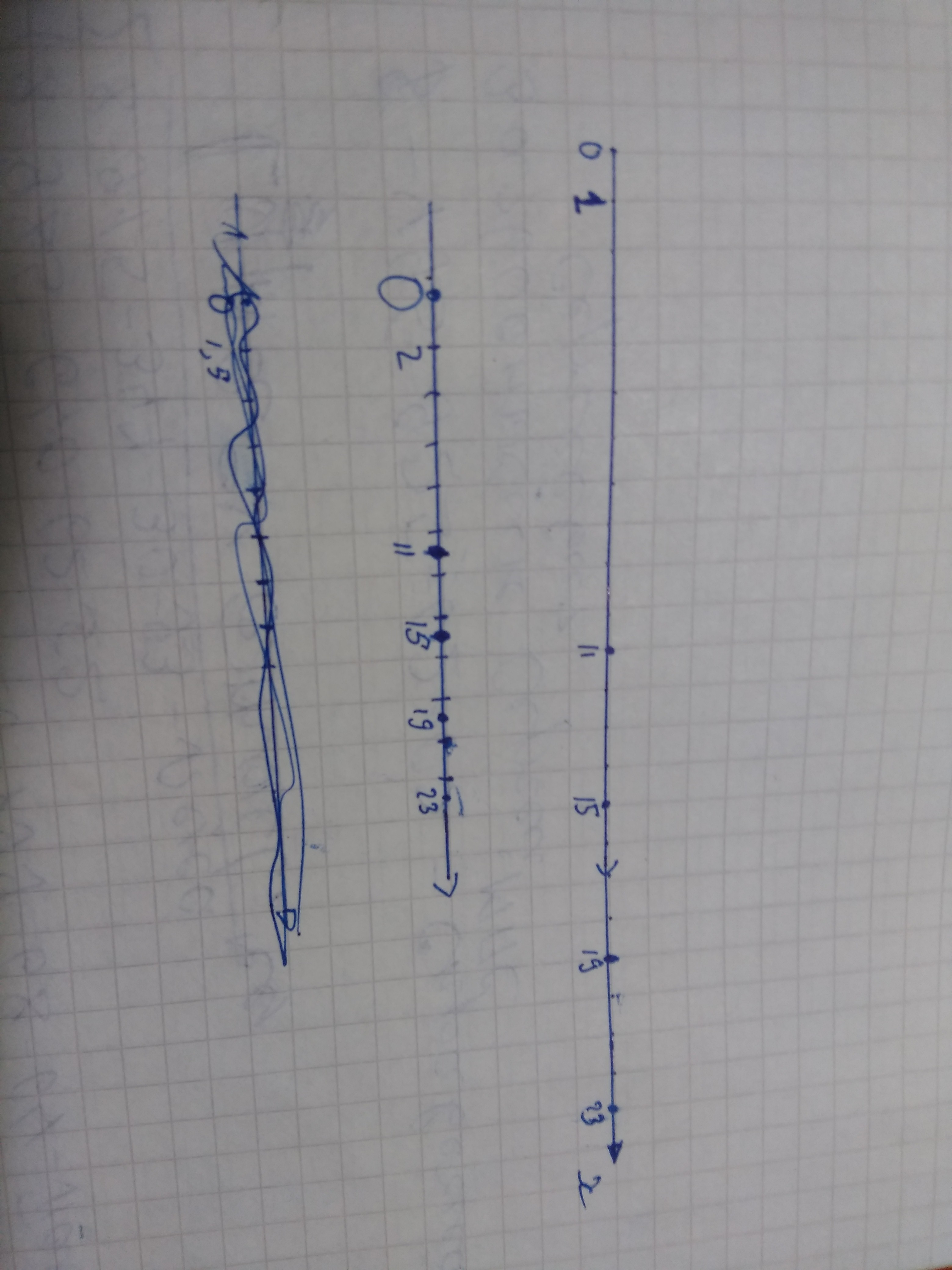 Здесь все просто. Рисуешь луч х. Ставишь начало отсчета 0 и единичный отрезок одна клетка. Дальше отсчитываешь и отмечаешь точки которые тебе нужны