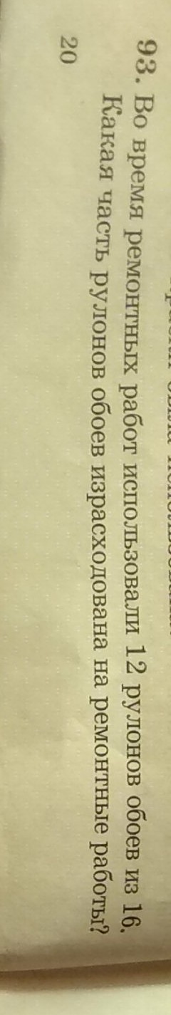 во время ремонтных работ использовали 18 рулонов обоев из 16 Какая часть рулонов обоев израсходовано на ремонтные работы