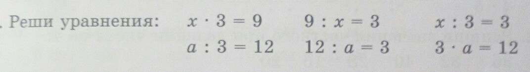 1) х*3=9 4)12:а=3