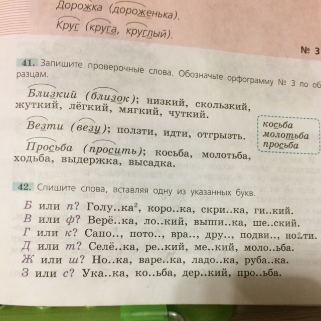 просьба (просить) косьба (косить) молотьба (молотить) ходьба (ходить) выдержка (?????) высадка (высадить)