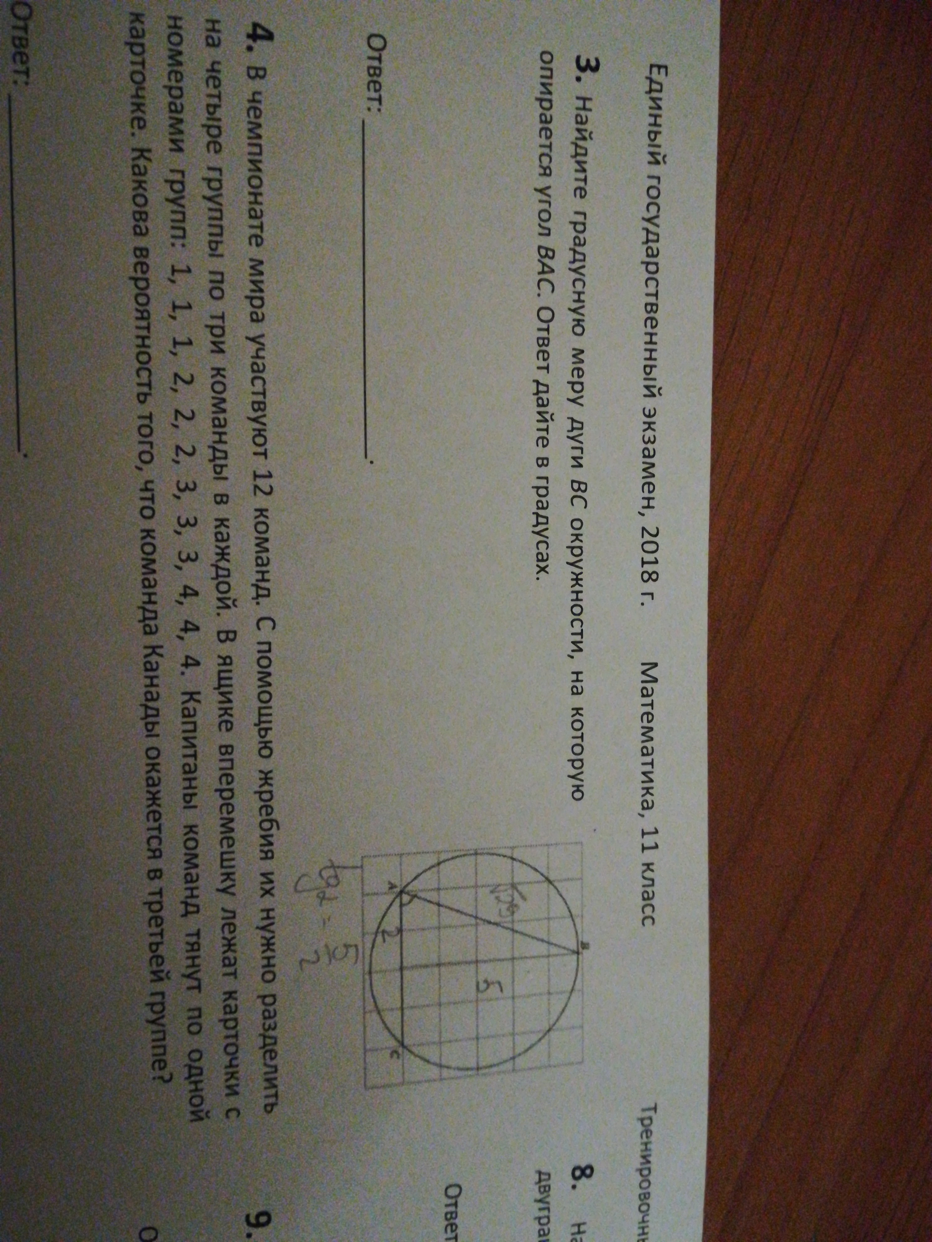 Тут не надо тангенсы искать так как не целое число получается, просто можно заметить что угол опирается как бы на четверть окружности и еще половину четверти так что градусная мера дуги составляет 135