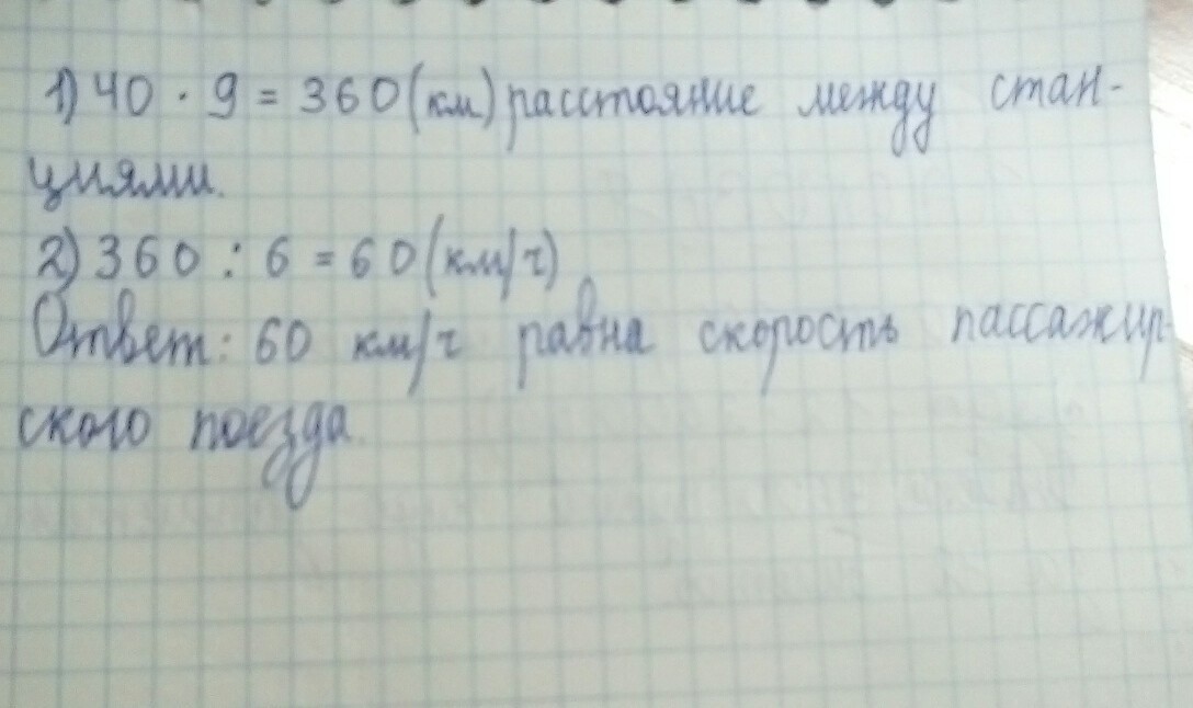 Путь от одной станции до другой товарный поезд прошёл за 9 часов, а пассажирский за 6 часов. Найдите скорость пассажирского поезда, если скорость товарного поезда равна 40 км/ч.