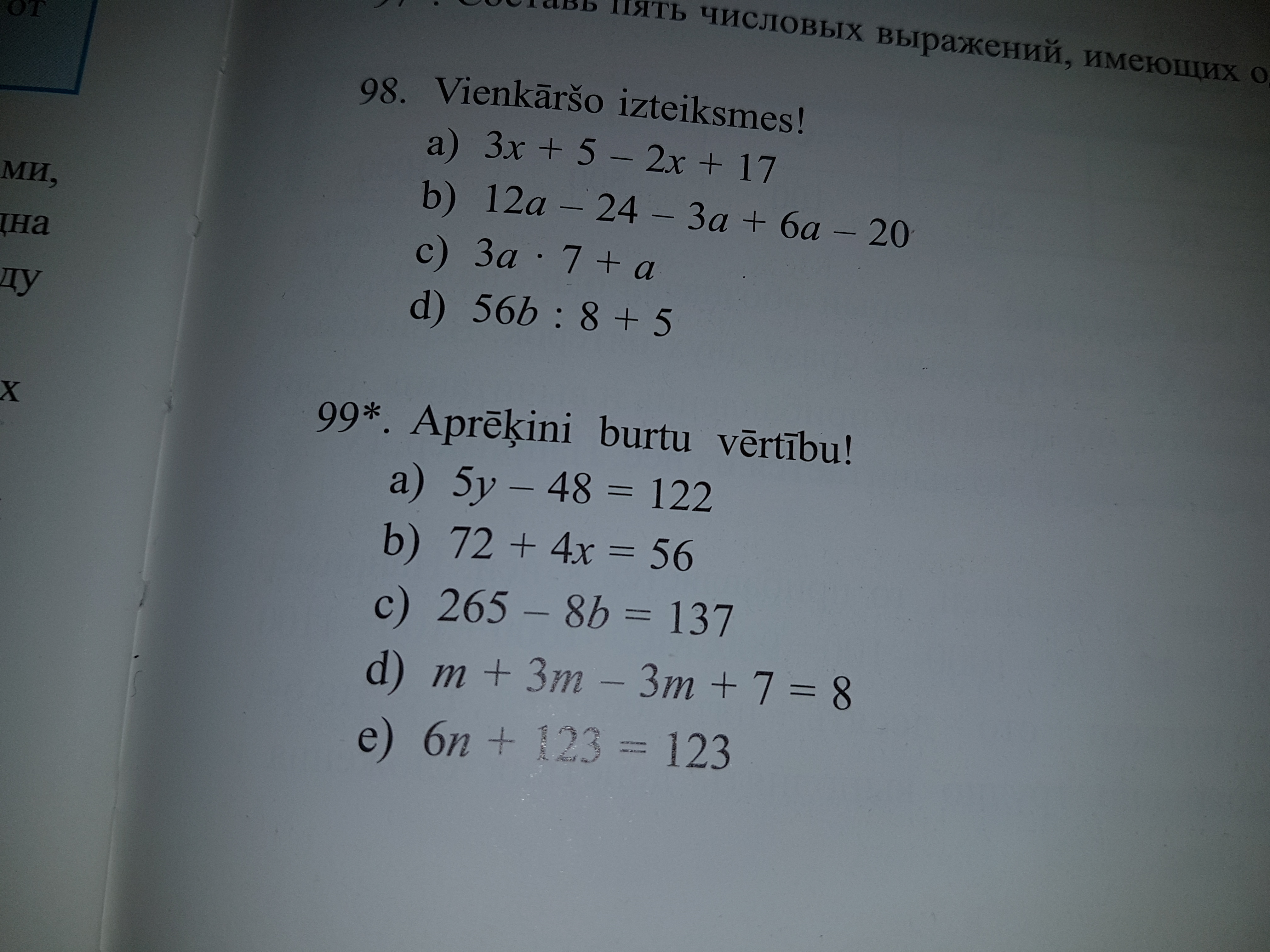 Помогите решить пример 5у-48=122. Или 72+4х=56. Спасибо заранее. Задание 99
