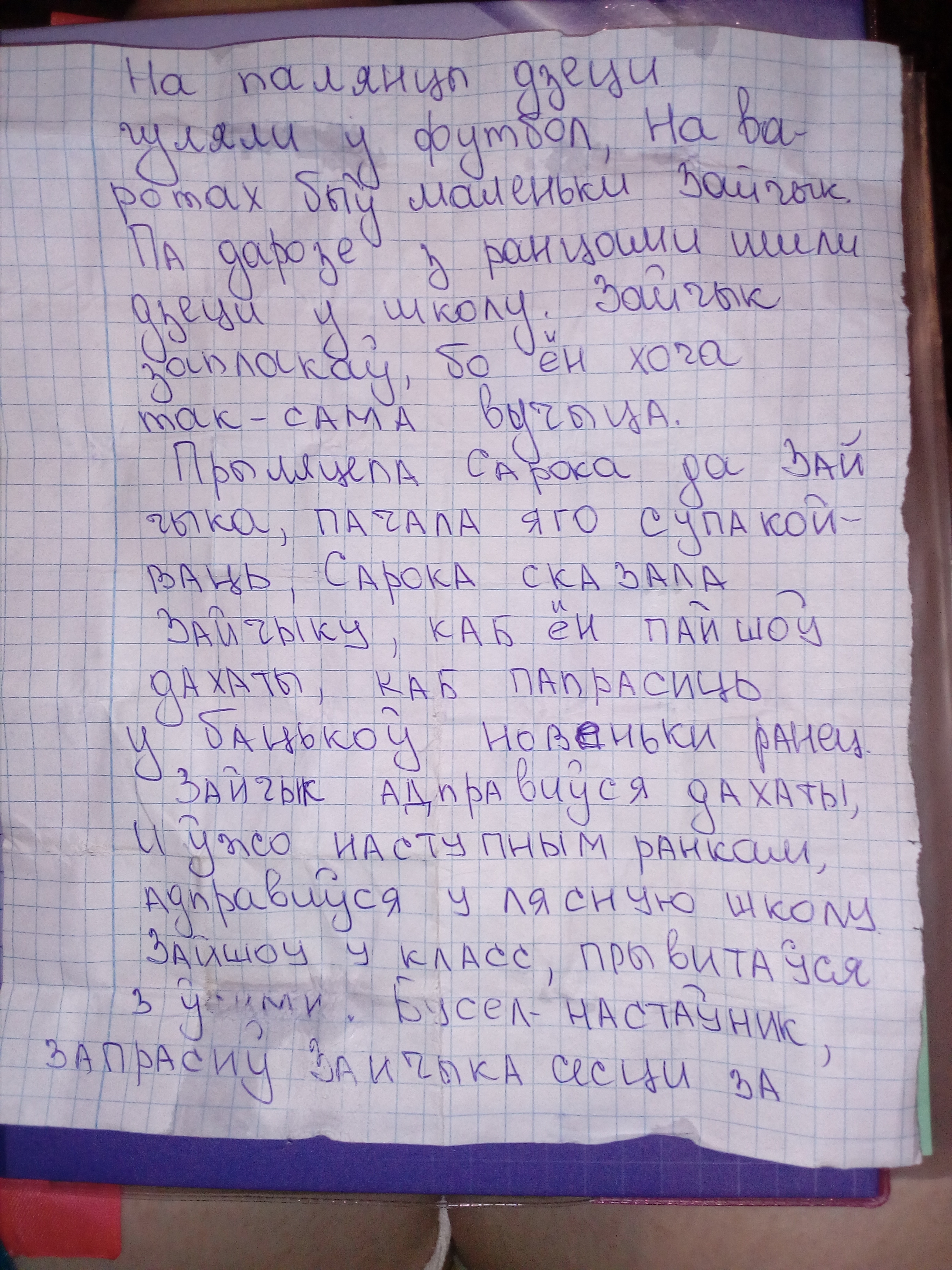 Складзице невяликую казку.выкарыстайце апорныяспалучэнни слоу и сказы:на палянцы,гуляли у футбол,на варотах,маленьки Зайчык,па дарозе,з ранцами,Зайчык заплакау,хоча так сама вучыцца,прыляцела Сарока,пачала супакойваць,папрасиць у бацькоу,новеньки ранец,адправиуся у ляснуюшколу,прывитауся,Бусел,—настауникзапрасил сести,Зайчык узрадавауся,стау вучнем.
