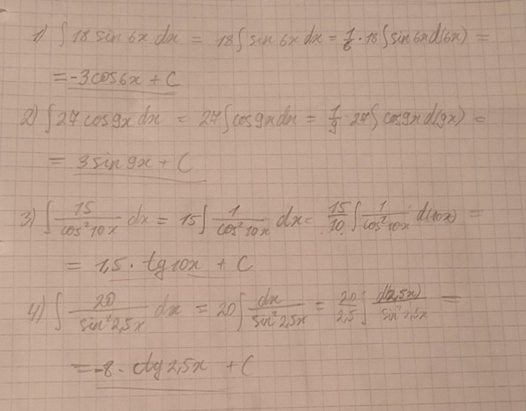 Здесь был применён приём подведения под знак дифференциалла (ну и основные свойства неопределенного интеграла)