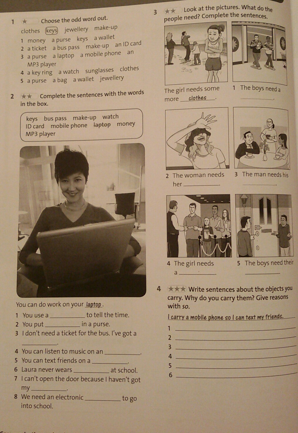 3.(a purse),a laptop,a mobile phone, an MP3 player.