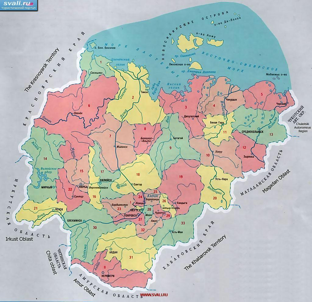 На востоке республика Саха граничит с Чукотским АО,Магаданской областью.На юго-востоке-с Хабаровским краем.На юге-с Амурской и Читинской областями.На юго-западе-с Иркутской областью.И на западе-с Красноярским краем.