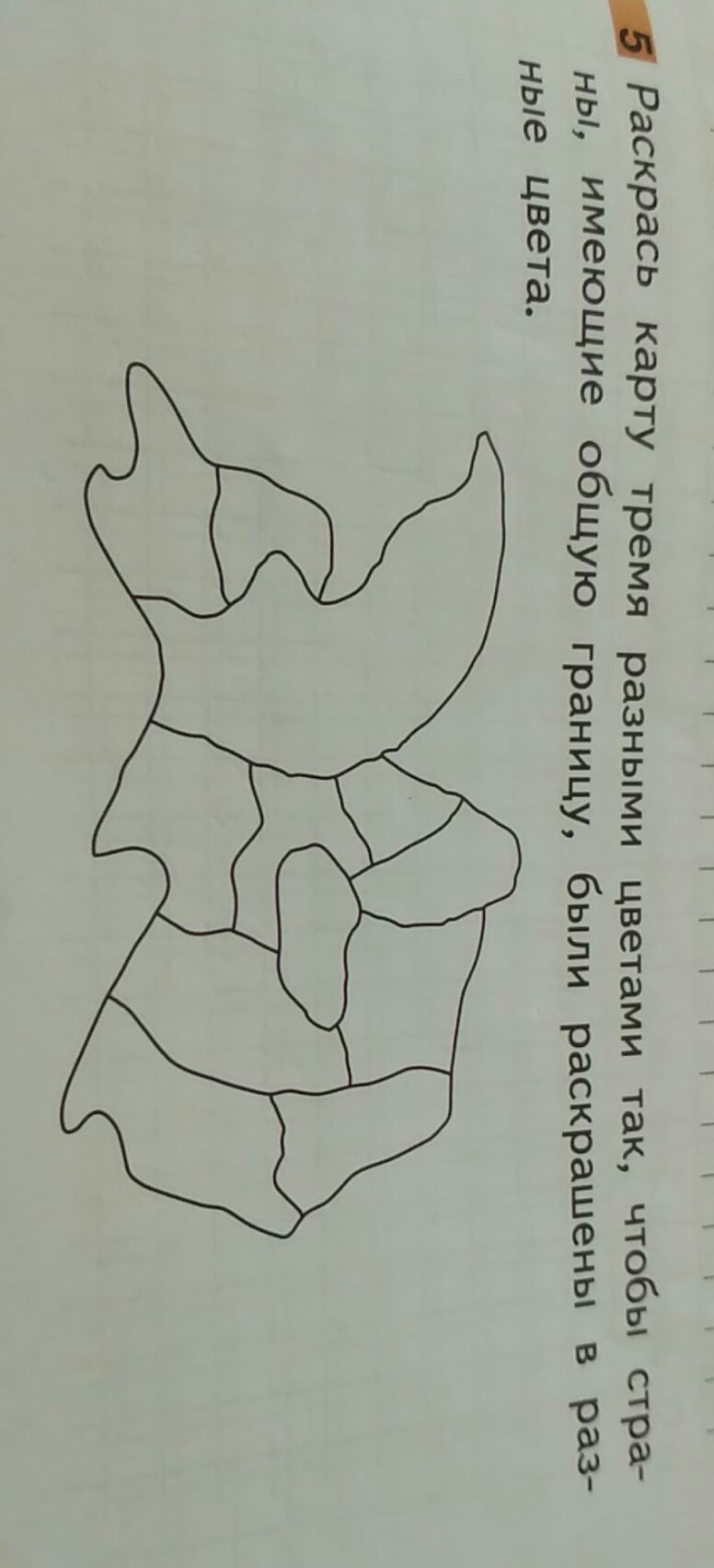 раскрась карту тремя разными цветами так, чтобы страны , имеющие общую границу, были раскрашены в разные цвета