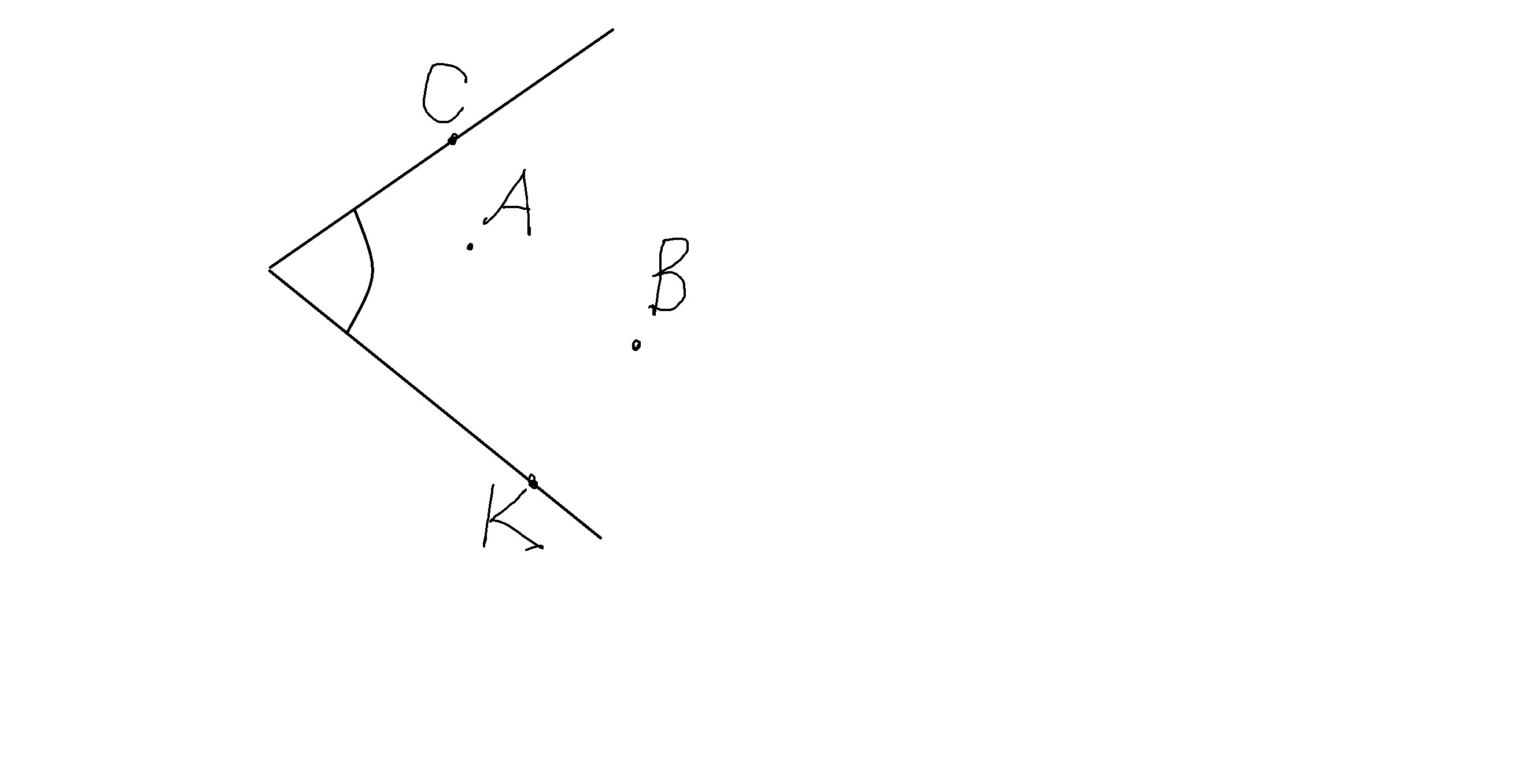 начните не развернутый угол hk отметите две точки внутри этого угла и две точки на сторонах угла.