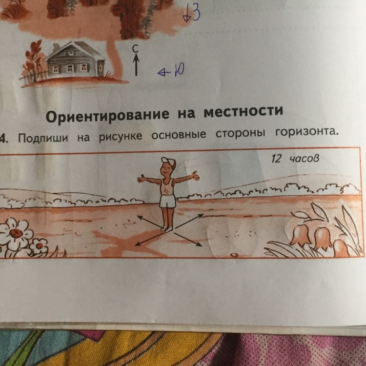 смотрим на рисунок. впереди мальчика -запад, за спиной - восток. По-правую руку - север, по-левую - юг.