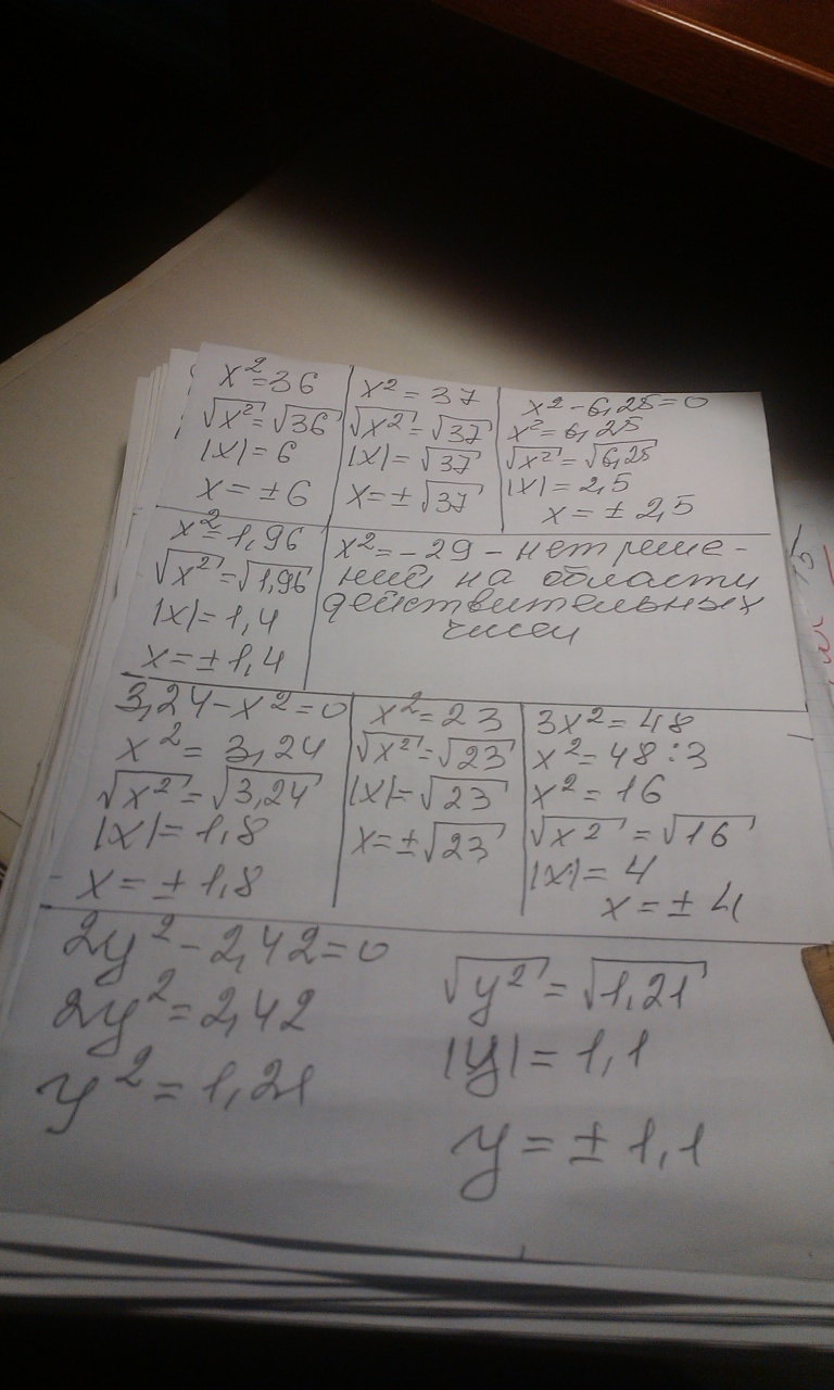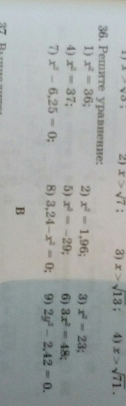 Такие уравнения имеют несколько способов решения: напримар 1) х в квадрате=36, х в квадрате- 36=0, (х-6)(х+6) =0. х=6 или х=-6. Ответ такой же
