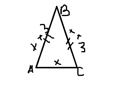 т.к. равнобедренный треугольник то стороны АВ=ВС=х+3