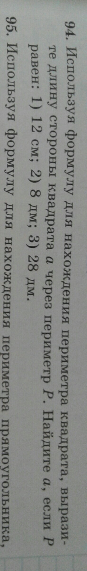 3) а = 28 : 4 = 7 дм