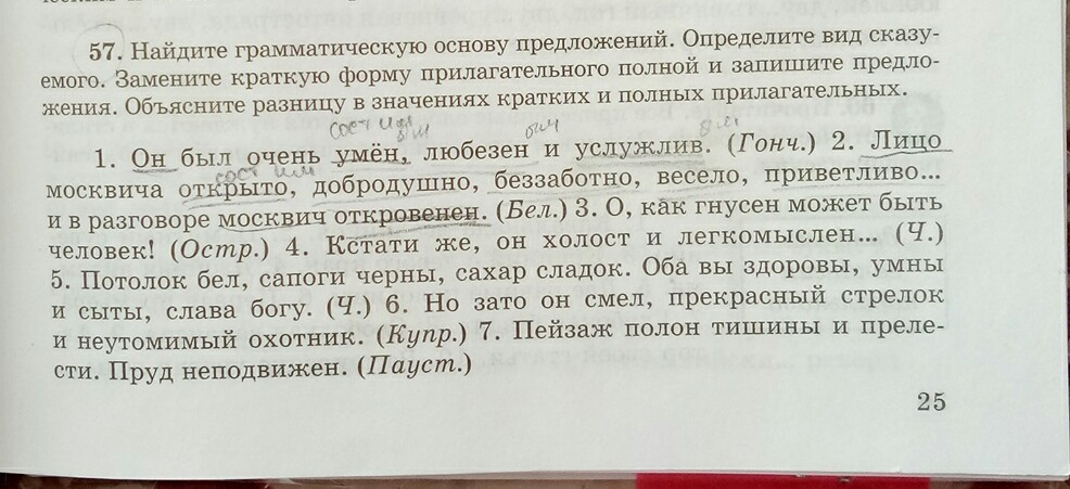 Он был очень умный любезный и услужливый.Лицо москвича открытое добродушное беззаботное веселое приветливое...и в разговоре москвич откровенный.О,какой гнусный может быть человек!Кстати же, онтхолостой и легкомысленный.Белый потолок,чёрные сапоги, сладкий сахар.Оба вы здоровые,умные и не уутомимый охотник.Пейзаж полный тишины и прелести.Не подвижный пруд