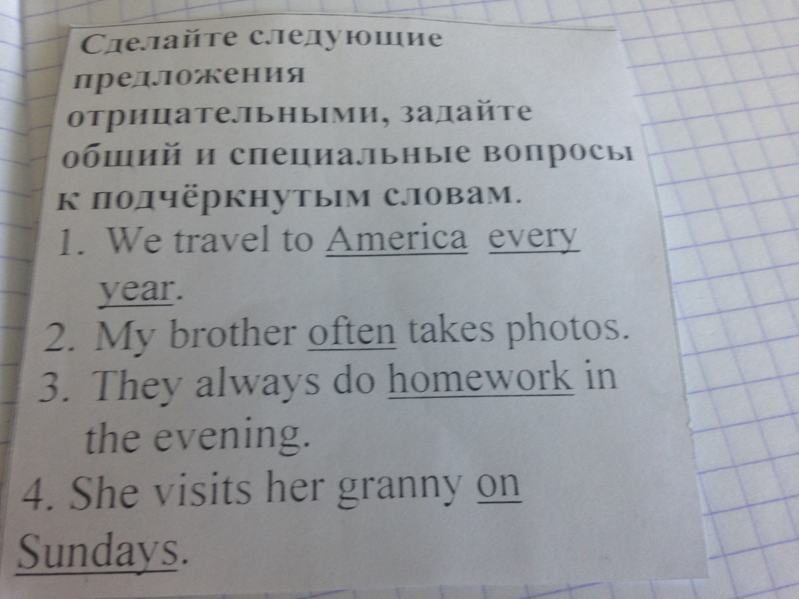 they doesn't do homework in the evening. did you do your homework?