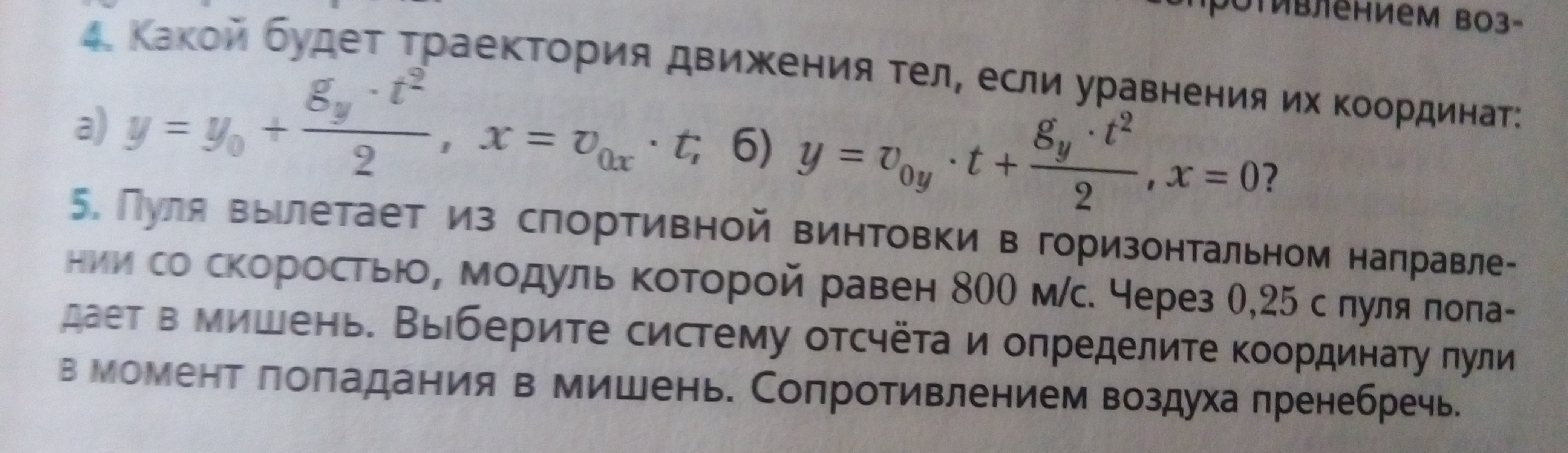 Система отсчета - начальное положение пули (xo=0, yo=0)