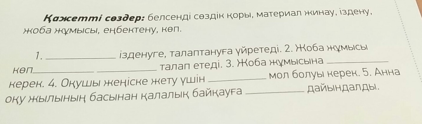 1 жоба жұмысы 2 іздену,еңбектену3 материал жинау 4 сөздік қоры 5 көп