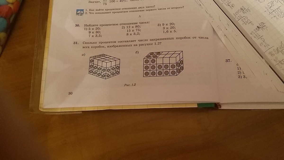 Сколько процентов составляет число закрашенных коробок от числа всех коробок, изображенных на рисунке 1.2?