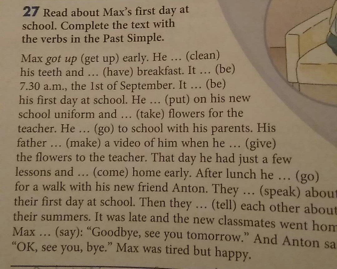 Read about Max's first day at school Complete the text with the verbs in the Present time