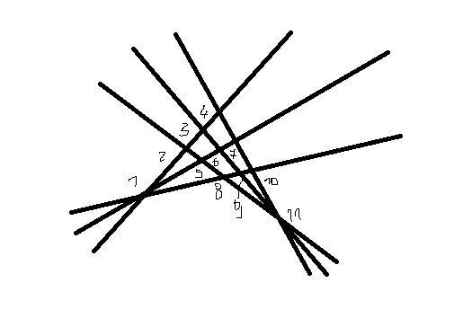 Помогите пж сфотографируйте ответ провели 6 прямых и отметь на них 11 точек так,чтобы на каждой прямой было 4 точки