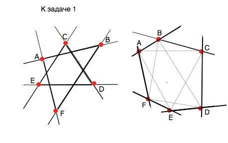 1)Как надо расположить шесть точек,чтоб они определяли шесть прямых?