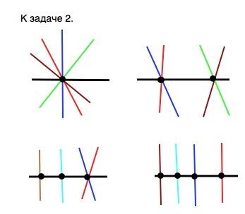 2)Данную прямую пересекают четыре прямые.Сколько может образоваться точек пересечения этих прямых с данной?