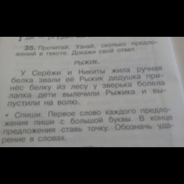 У Серёжи и Никиты жила ручная белка.Звали её Рыжик.Дедушка принёс белку из лесу.У зверька болела лапка.Дети вылечили Рыжика и выпустили на волю.