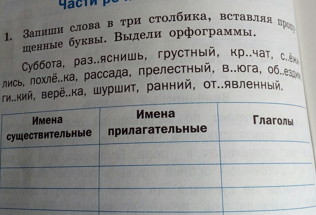 1. Имена существительные: суббота, похлёбка, рассада, вьюга, верёвка.