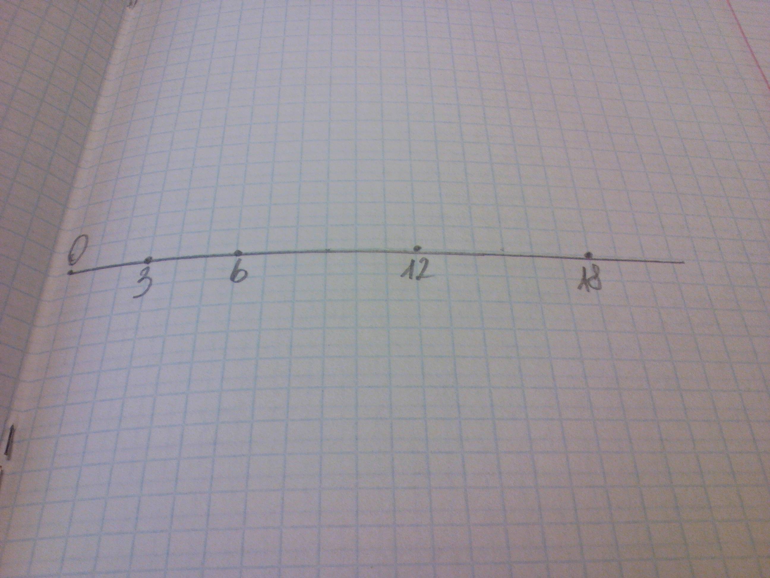 помогите Начертите Луч с началом в точке 0 отступите от точки 0 0 права три клетки отметьте полученную точку и Подпишите под ней число 3 отметьте на координатном луче числа 1 6 12 18